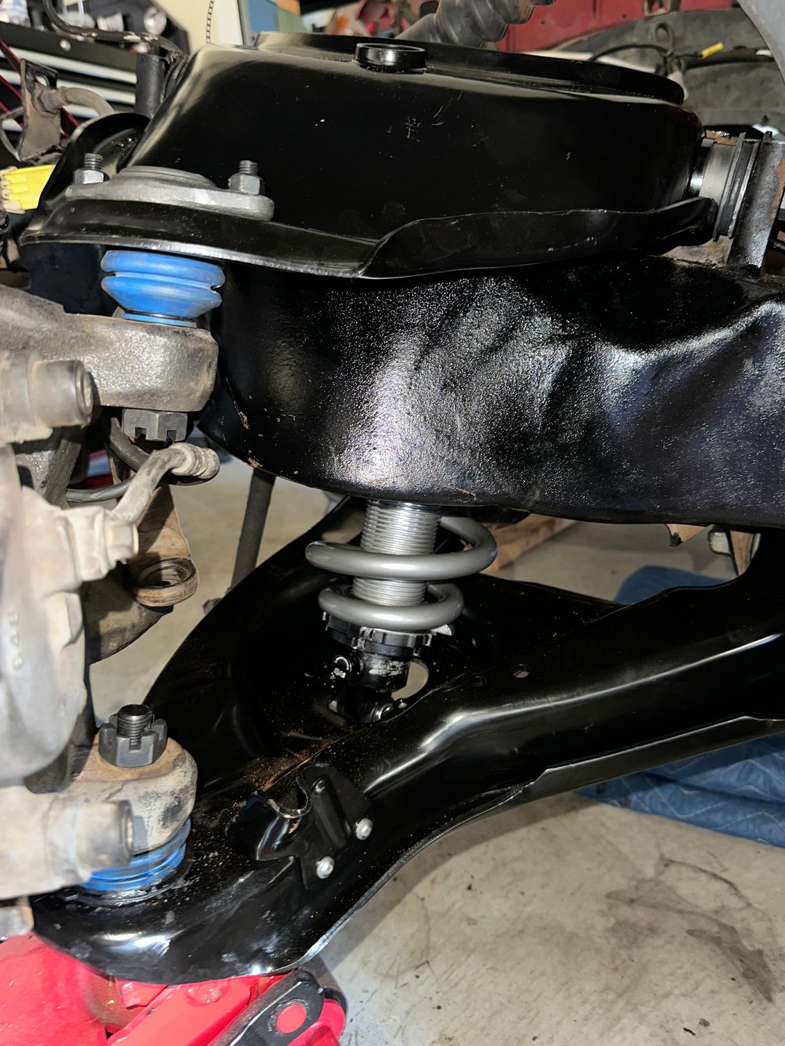 Front end is now complete (with the exception of pitman arm that needed to be warrantied out due to shipping damage and a new steering shaft to delete rag joint). All new suspension is installed with QA1 coilovers. Need to raise the coils a good bit to get me around a 3.5” front drop. Not an issue though.