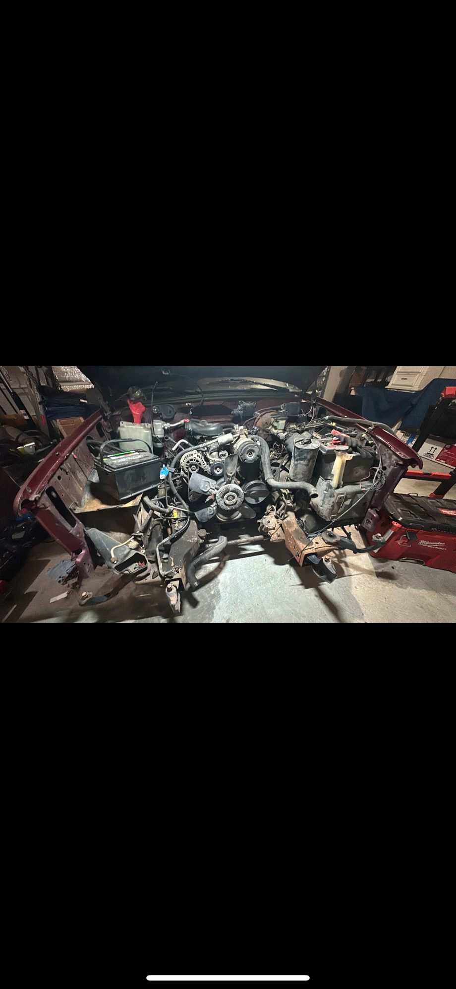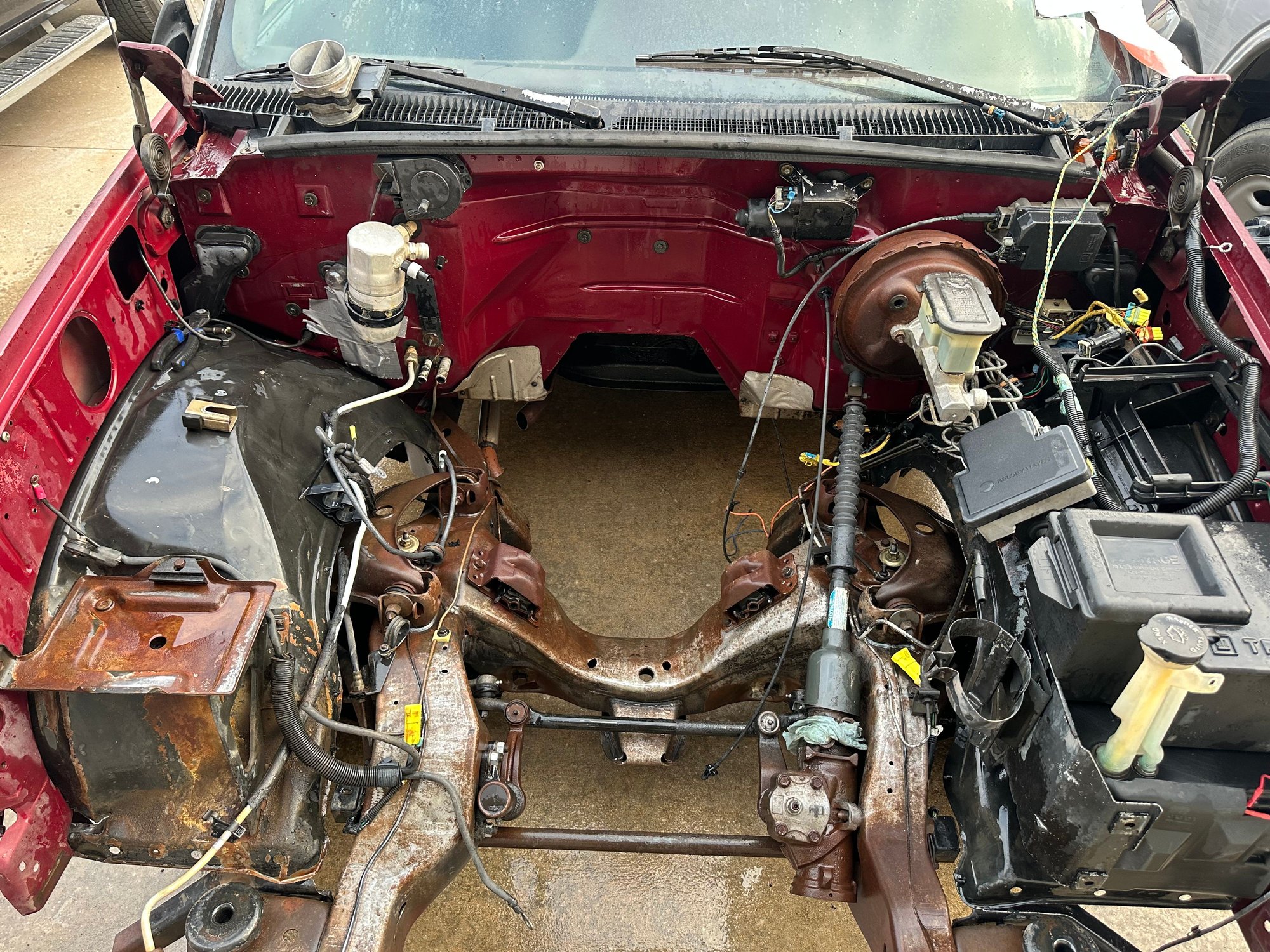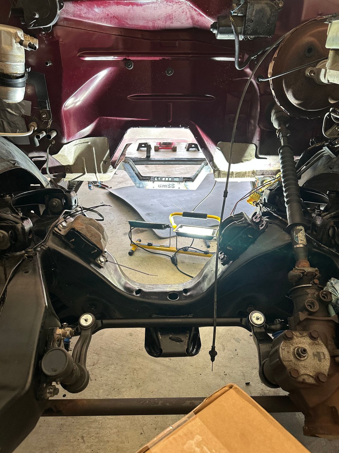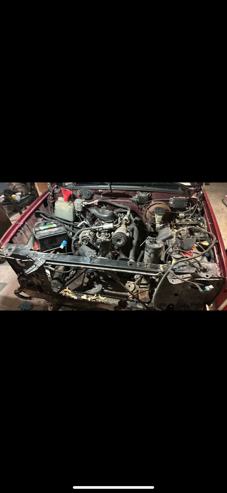 Planning ahead here but engine bay and frame needs a good bath. I’m going to look at getting truck to car wash for a very extensive power wash. I plan to paint the firewall black also. I am leaning towards white on exterior color so I don’t want to regret leaving the firewall maroon when I had everything out of it.