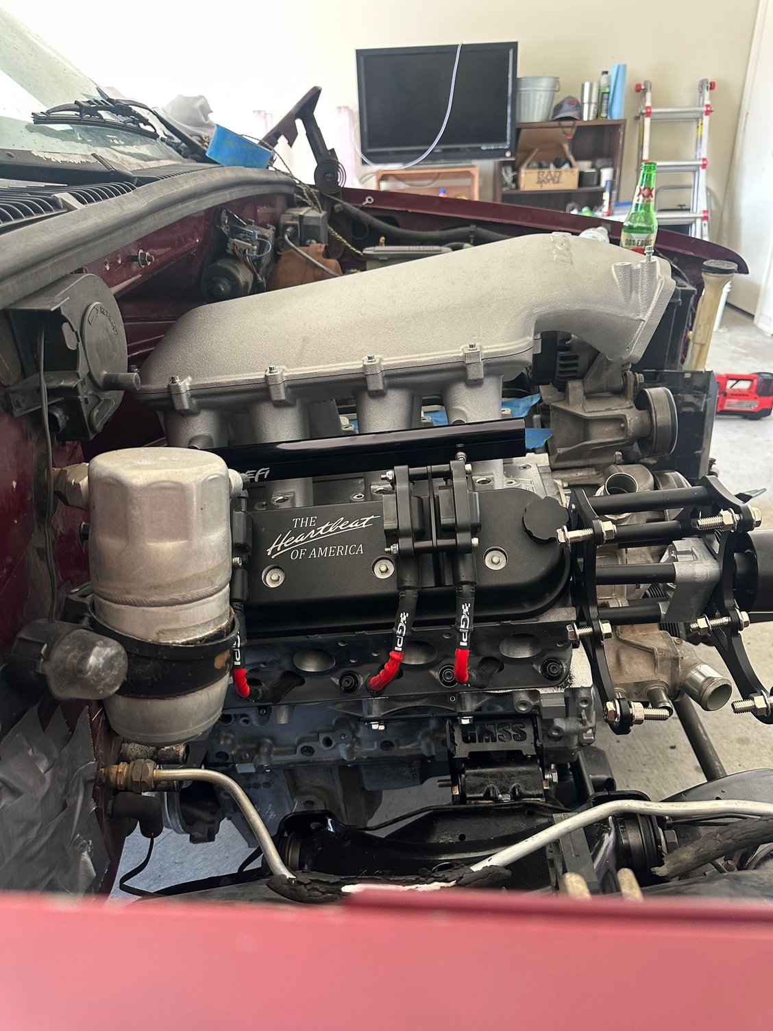 While I waited to find time to work on the chassis, I found someone local to CNC engrave a custom little touch up on my BTR valve covers. I found an old school set of SBC/BBC valve covers with “Heartbeat of America” and I had to replicate that. I think it turned out amazing!