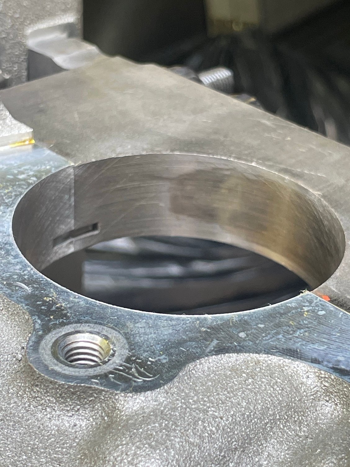 That pic is always worth showing again. This hone was a super quickly, just enough to get the journals back to round. Pay attention to the side of the journal, which is where material was actually removed, which proves that using ARP main studs takes the journal out of round…but any fastener that introduces more clamping force will do the same in any situation. This journal measured 2.7504, and all 5 were within .0002. We measure out to the .0001….