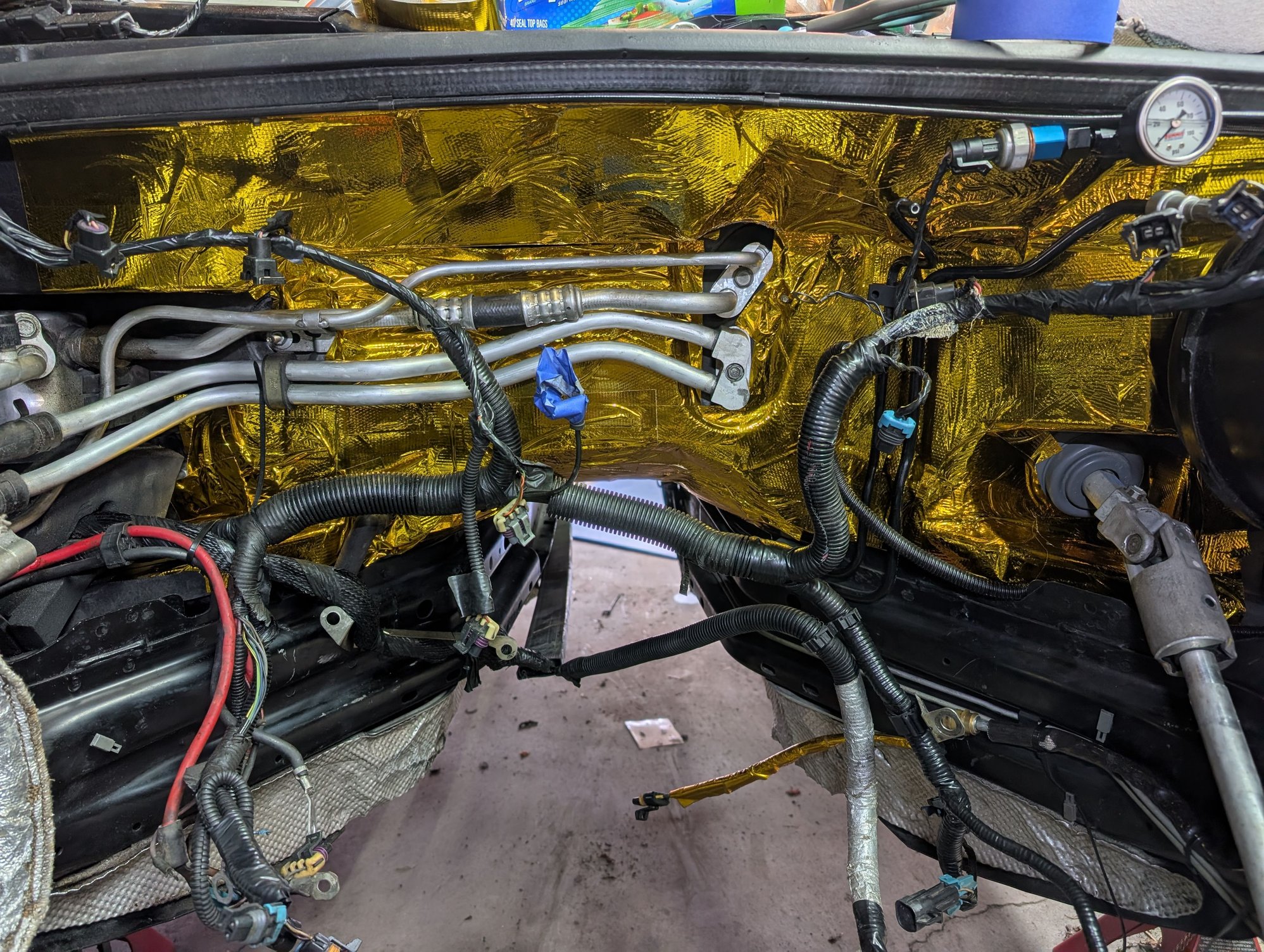 I finally cut the tub out for the C6 exhaust, and cleaned the firewall for some DEI reflect a gold heat shield.