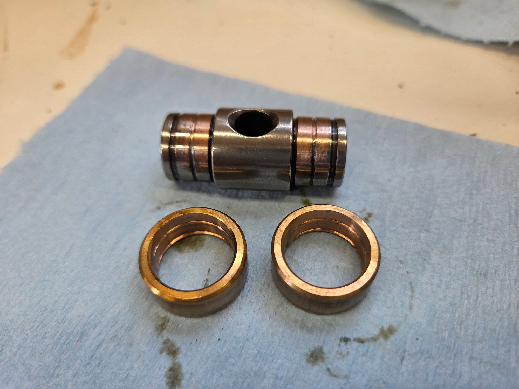 It is hard to tell from the pics, but the grooves I think I'm seeing look to be oil grooves that are machined into the bushings and trunnions, to help hold extra oil. Not seeing any wear grooves. Have you inspected the diameters, inner and outer, for any egg shaping or out of roundness?