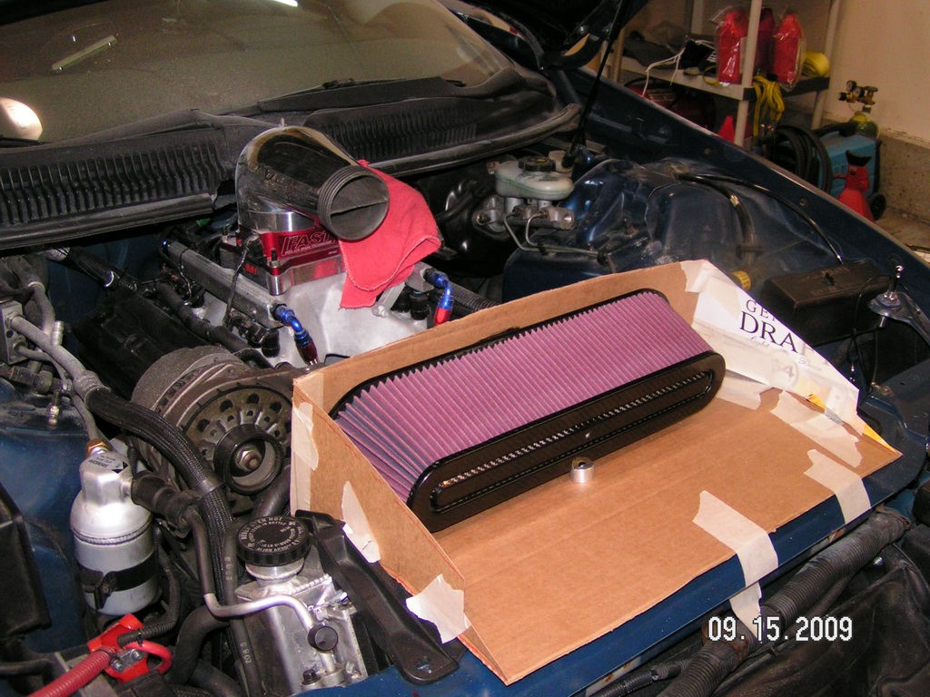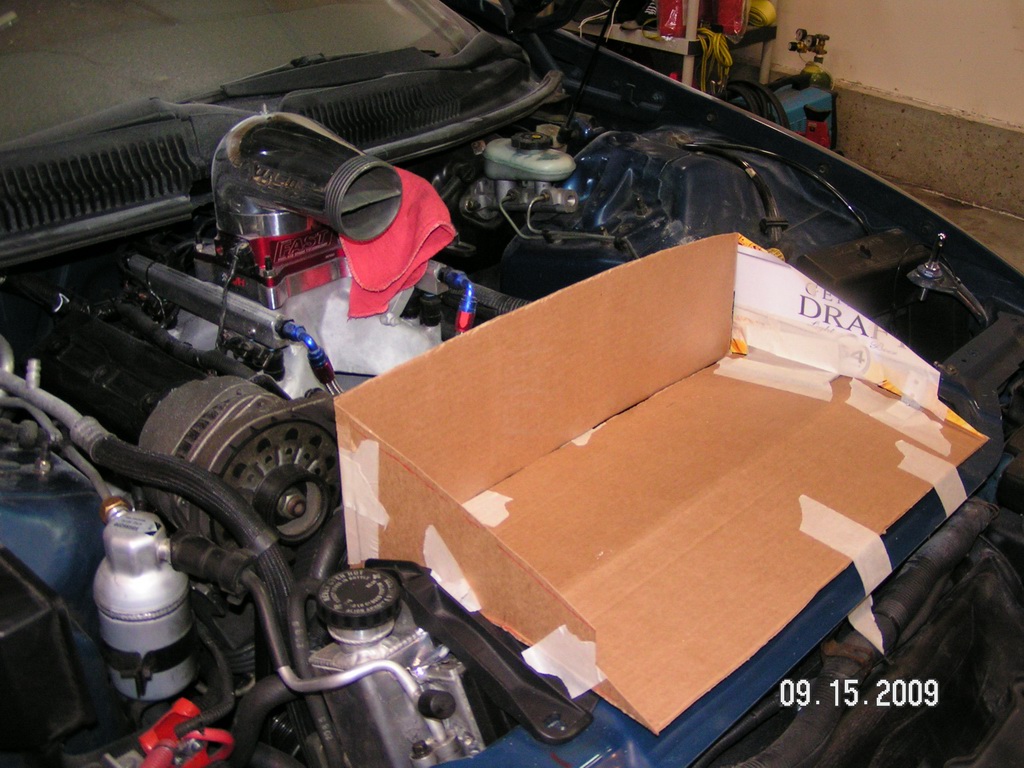 Then using cardboard, slowly start figuring out the airbox shape that will fit under the hood (and be large enough to fit your air filter):