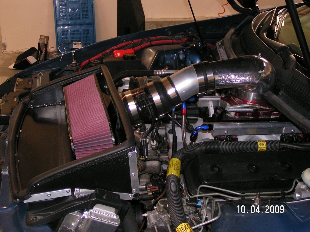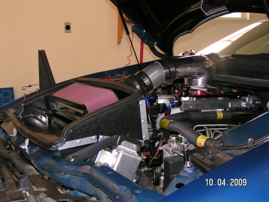 you have an awesome set up. and its true the ram air part should actually be further to the nose of the hood. since im still running a TB and the OE manifold it would seem impossible for me to push the filter closer to the engine. it would leave me no room for the MAF, im really thinking of just getting some think sheet metal and making my own ram air hood.