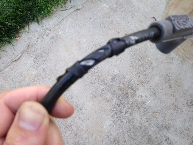 I found this after removing some of the mysterious electrical tape that suddenly appeared on the plug wire next to the "patched" primary