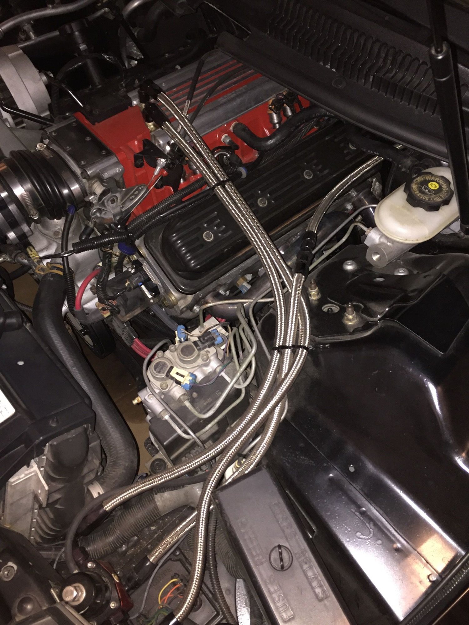 The Aeromotive FPR can be seen in the lower left of this pic, with all the braided hoses running to it.