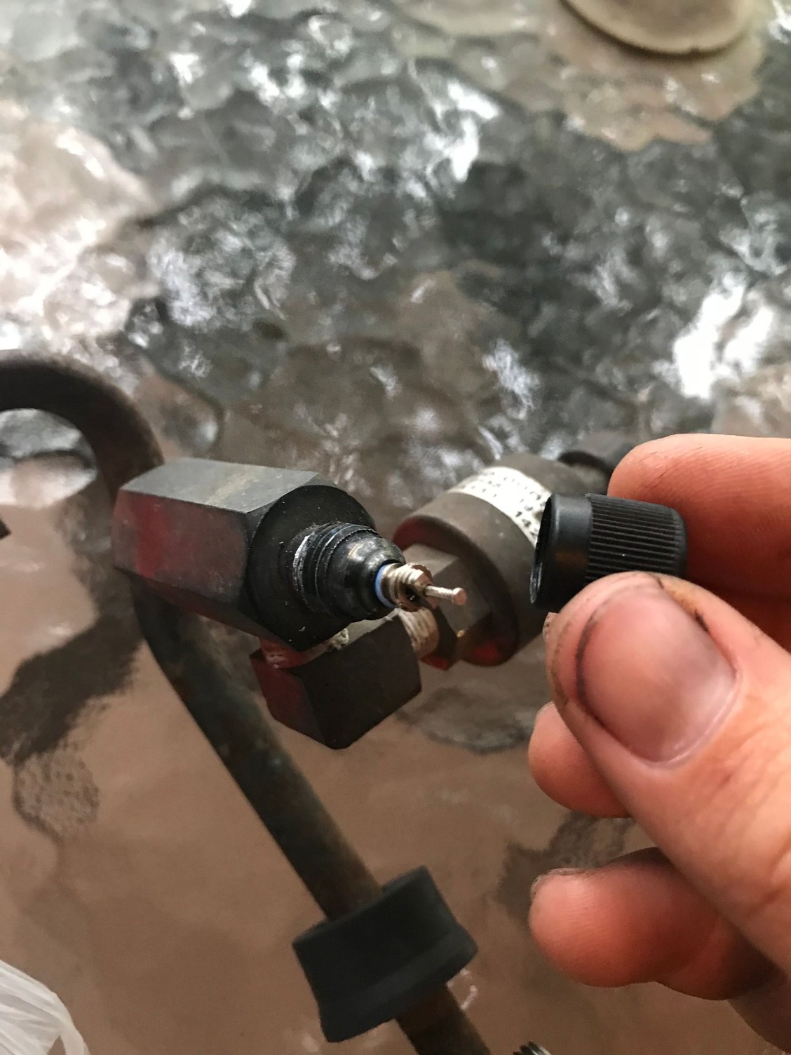 So I’m having a hard time putting this schrader valve on . I put the valve in the fuel inlet but the black cap does not screw in like the valve is too big. What am I doing wrong?