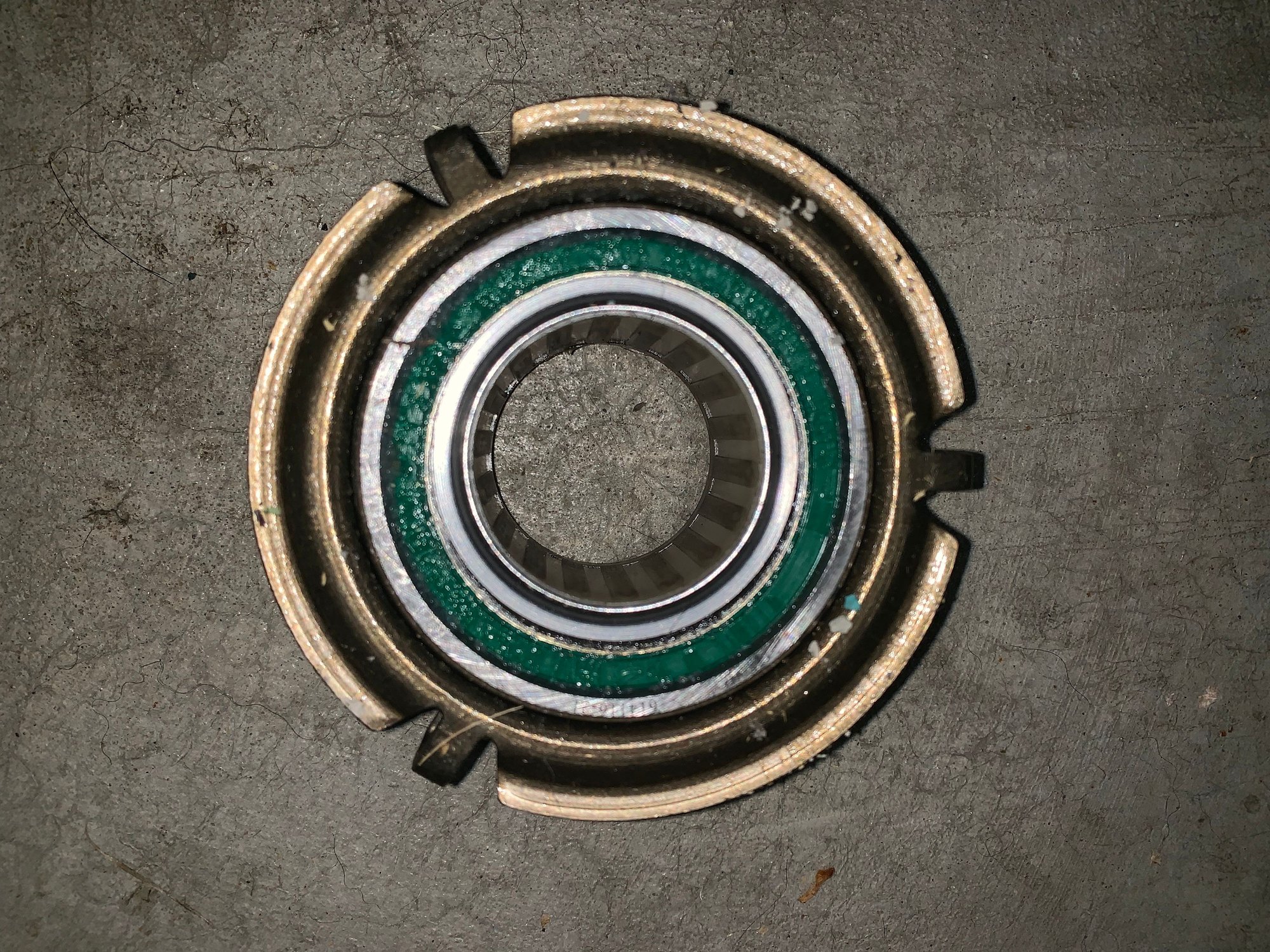 Well I dropped the whole shebang two days ago. Engine, k member and all. Got the trans off tonight and the throwout bearing is bent again. When you spin it, its wobbly like an egg. The input shaft looks straight when I spin it and when I wiggle it, there is only the smallest amount of side to side and up and down motion to it.