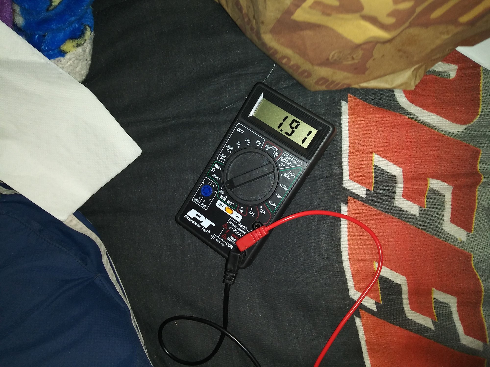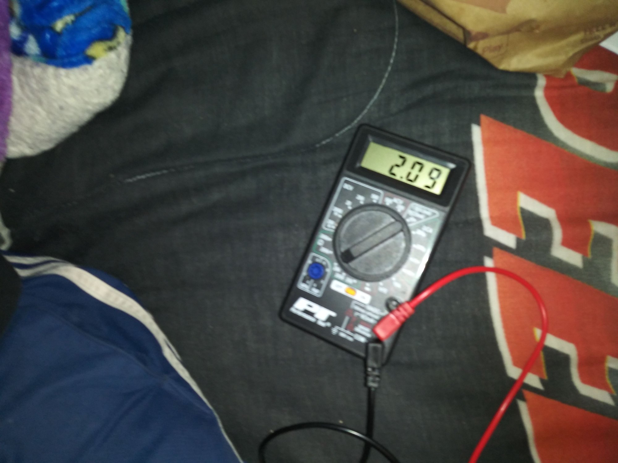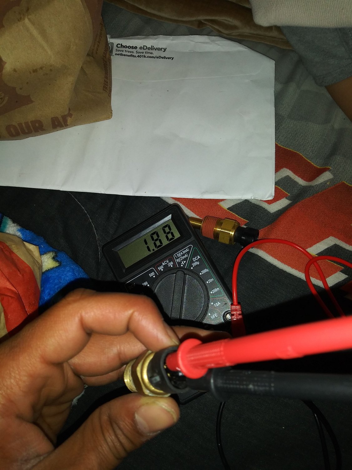 So once I got home I pulled out my old and new ECT sensors to do some testing. I first tested the old one, (20 Ohms) and got a 2.09