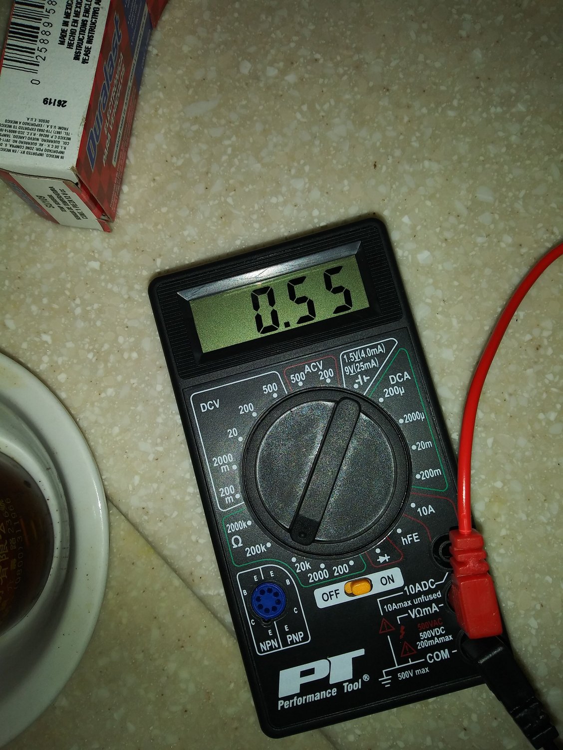 Here I had got a cup and fill it up with hot water (Really hot) i tested the old first, still on 20 Ohms and I got a 0.55