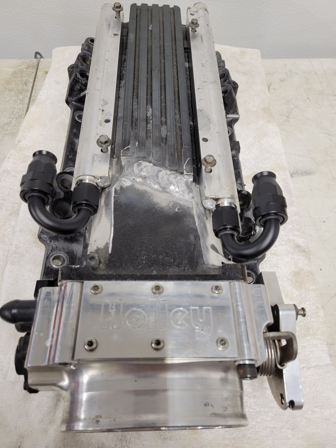 Since moving to forced induction I had to make room for the fuel rail AN fittings and move the MAP sensor location. Figured since I didn't need the cross over tube anymore, I would just weld up and rework the plenum opening while I was messing with it. (I am by no means a welder! But can get the job done.) It's not done yet but here's a few pics. I'll update as I go if anyone is interested. Way more stream line than factory The fuel rails and fittings clear now and there is still 2 bolts for the throttle cable bracket to mount Not sure where to put the 3 bar map sensor yet. Maybe the back wall of the plenum by the firewall?