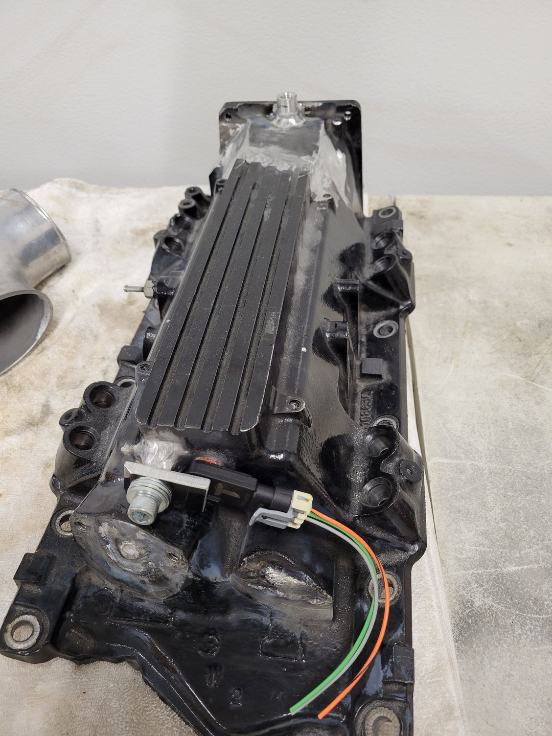 Thread in IAT sensor, relocated 3 bar MAP with clamp, and added bungs to strap the intake together from blowing off. The elbow will get welded to the charge pipe. Plus did more work inside the plenum which I didn't get a pic of. 🙃