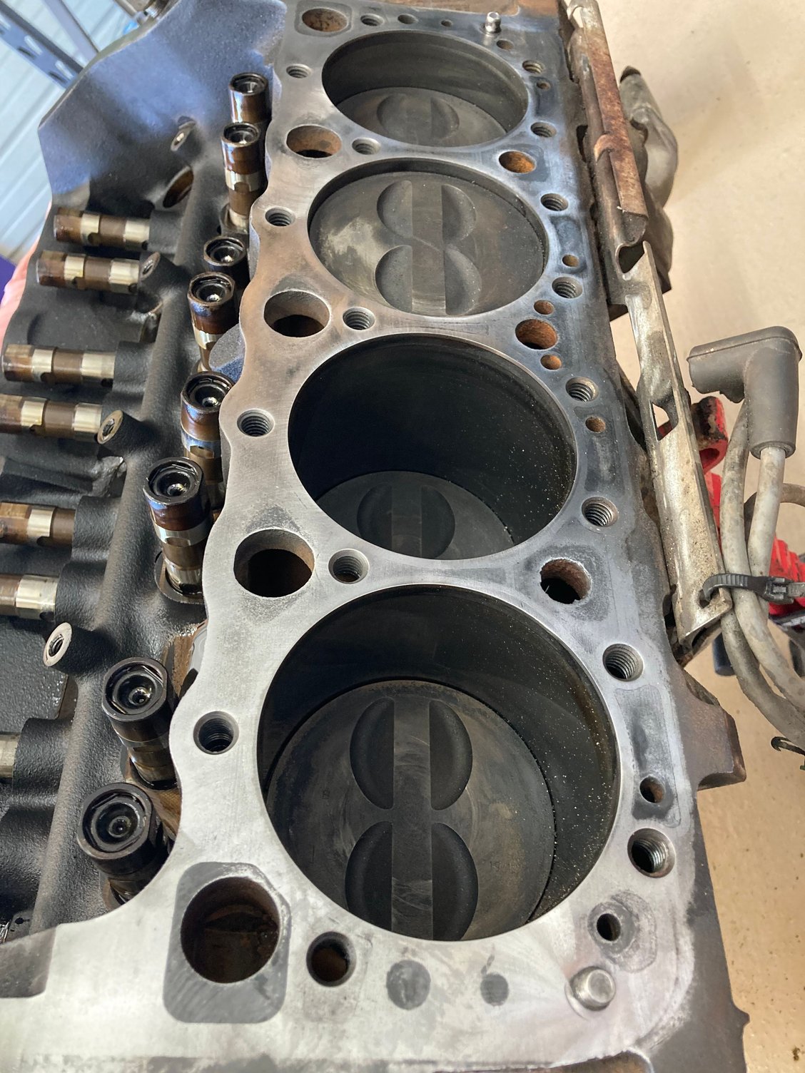 Oh man, I hope I didnt F'anythng up when I did mine. I used a wire wheel, then a 3m 120grit bristle wheel and got the surface super clean! Engine was on the stand and I covered up the lifter valley and shop vac'd the whole thing thoroughly. I didnt think it could take down the material that much. .008 is a lot. I didnt bear down too hard. She's back in the car and running now. I guess we'll see how well those Fel-Pro head gaskets keep'er sealed.