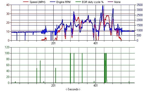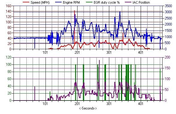 I also replaced the EGR solenoid, they are cheap, I know mine works, but I figure maybe I should incase it had a small leak or something. So now it has a new EGR and new EGR solenoid. I did another drive test, this time with scan9495 and verified EGR is being called. I also did a second drive with my vacuum guage on it. The second image where I also added IAC