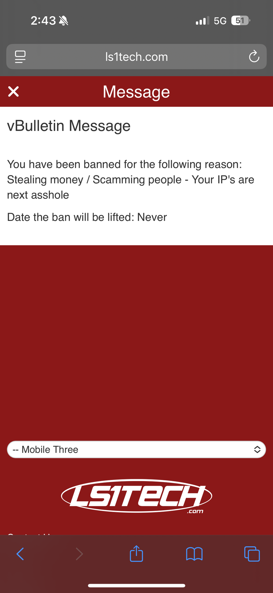 Agreed, definitely not professional of an LS1Tech Moderator*. Disappointing to say the least but happy to see that an Administrator investigated and corrected the issue.*