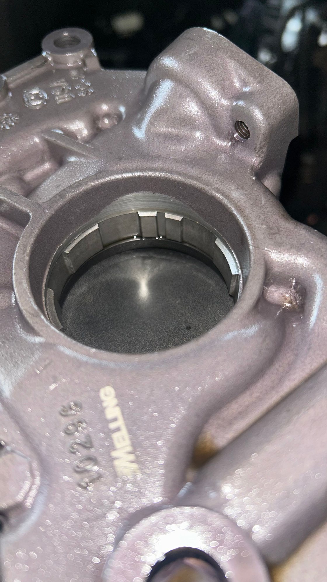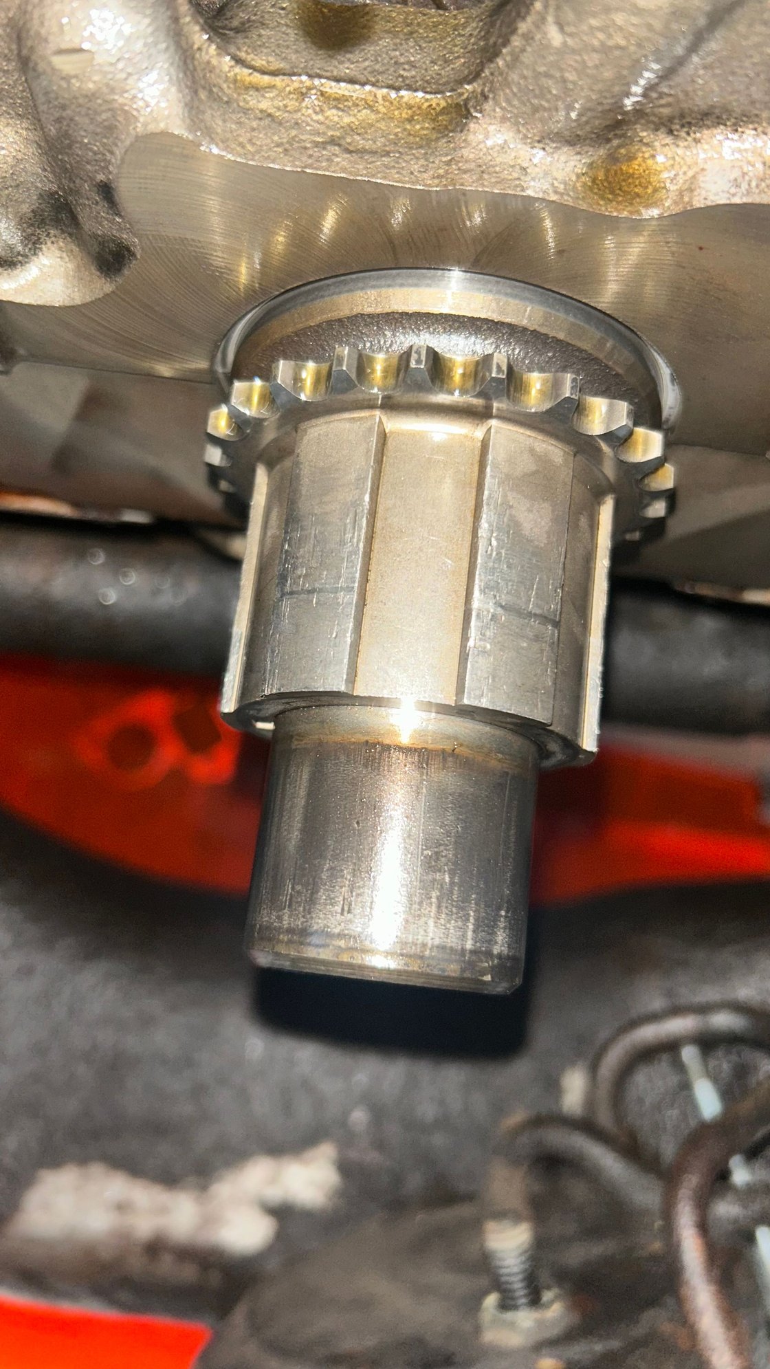 Pump is is cracked, can’t pick it up on the picture. And the sprocket is worn down with lots of scratches and dents. It is also allowing the oil pump to slip a little bit in some spots. Just taking some precaution and I’m just going to replace most of it.