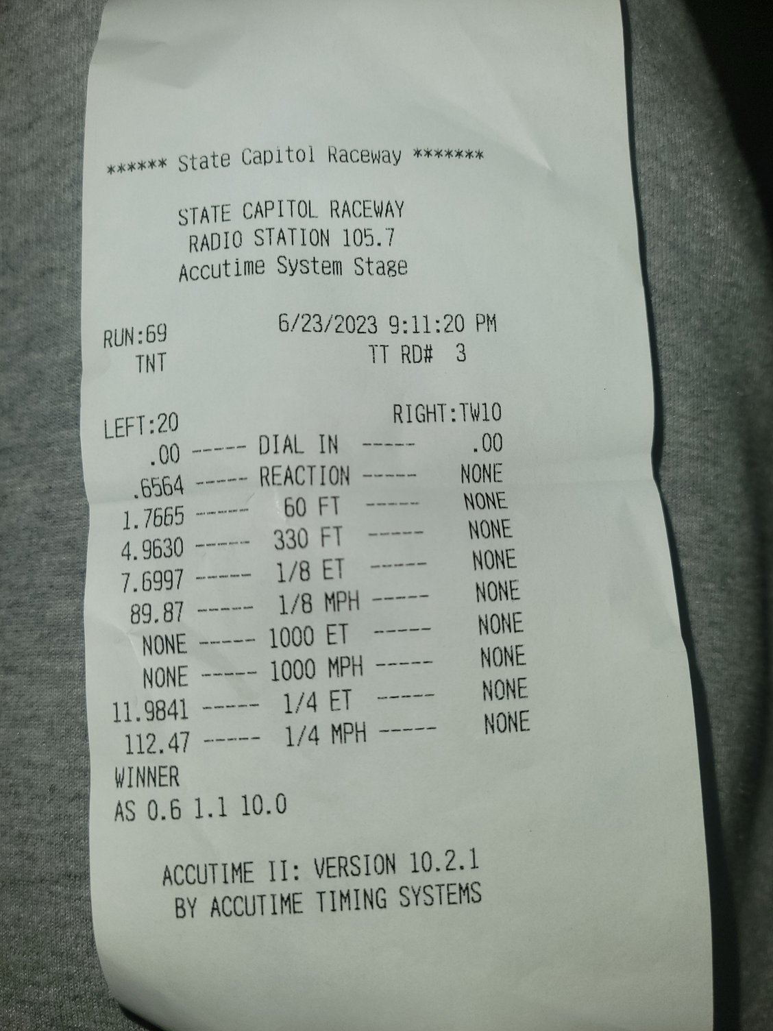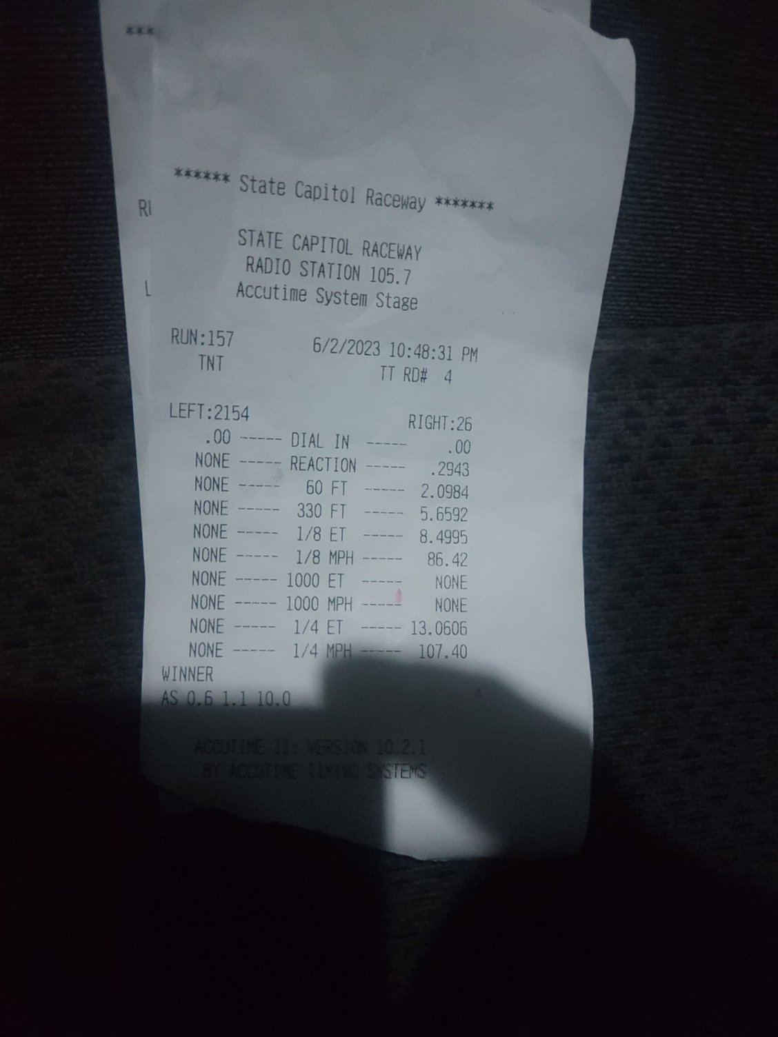 its a 5.3 sbe besides ls7 lifters, 243 heads port polished and milled .030, 102 mm intake and throttle body, btr stage 3 truck cam 218/224.553/.553 110+0, .050 head gasket from summit, dual springs 660 and trunion upgrade, fuel is an aeromotive 340 pump with 6an lines with aeromotive regulator and 42 lb flex fuel injectors on e85, 4l65 transmission, Detroit 410 gears with mini spools, and its a nitrous outlet plate kit with a nitrous outlet winmax and nitrous express progressive controller and the lnc2000 for timing and 2 step, also has a 3800 converter, ngk br7ef plugs. The truck made 400 to the back tire NA, and went mid 13s and on the 200 shot progressing in at 2.5 seconds it went the 11.9 number. Best mph was 116. Sounds like I need to learn how to use hp tuners. It seems very complicated tho