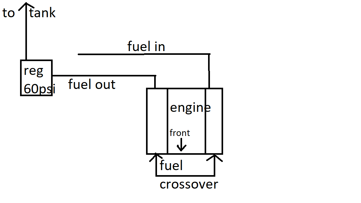 Got a 408 LS3 based stroker in my 72 chevelle, I installed fogger nozzles in the runners of my fast 102. My fuel system is an Aeromotive phantom apex system (450 lph) feeding -8 lines up drivers side holley rail, crossover hose from driver to passenger rail, then exit passenger rail to a magnafuel regulator set at 60psi, and then returns to tank via a -8 hose. Have 80lb seimens deka injectors in it.