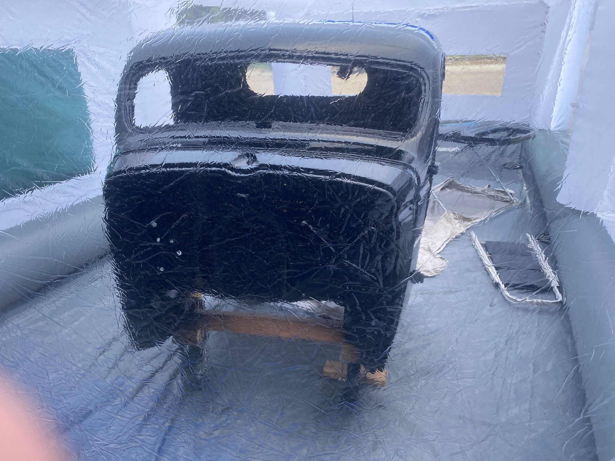 Going through the process now on a 76 camaro. Still sanding and fixing bits but it will be getting Eastwood single stage when it's time. Plan to frame up temp walls with 2x2 lumber and staple plastic to it.