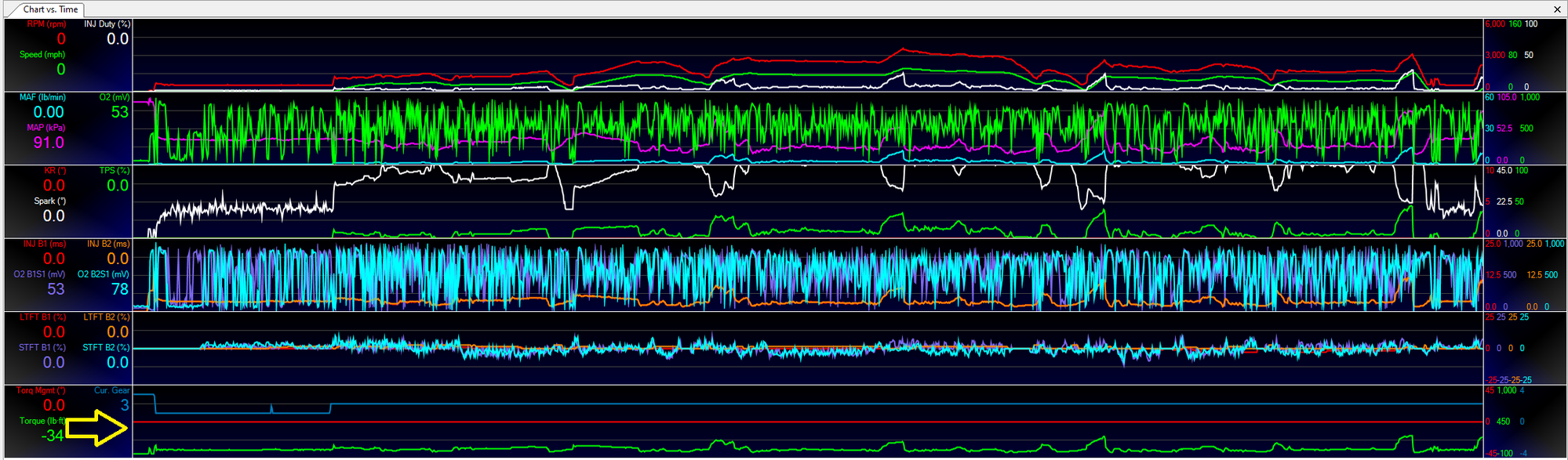 BACKGROUND: I have a 2001 Chevy Tahoe, believe it's a P01 Gen III Computer (possibly P59?). I have a built 4L60E and 6.0L with mild cam. I'm using baseline 5.3L tune, updating VE and MAF calibration. During some of my data runs it's pulling as much as 30 degrees of timing. I have also attached my latest tune "03 RUn 05 Final". It is setup to run / tune VE. Running MAF / MAP doesn't seem to make a difference in TM behavior.