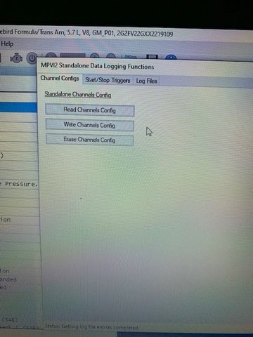For documentation purposes, I never could get the `99 TA to stand along log my channel config for that car. It would log but had the default channels. I had to connect the laptop. However, I had no problem with stand alone logging with the `08 Corvette. Why? I don't know ... CAN bus?