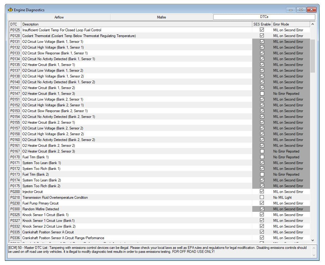 Does anyone know if it is still possible to remove the rear O2 using HPTuners? I tried posting this question on their forum, but all of the threads that I post in are completely deleted after asking the question. It seems that the Engine Diag DTCs are now greyed out on that option. I'm hoping someone had ideas.