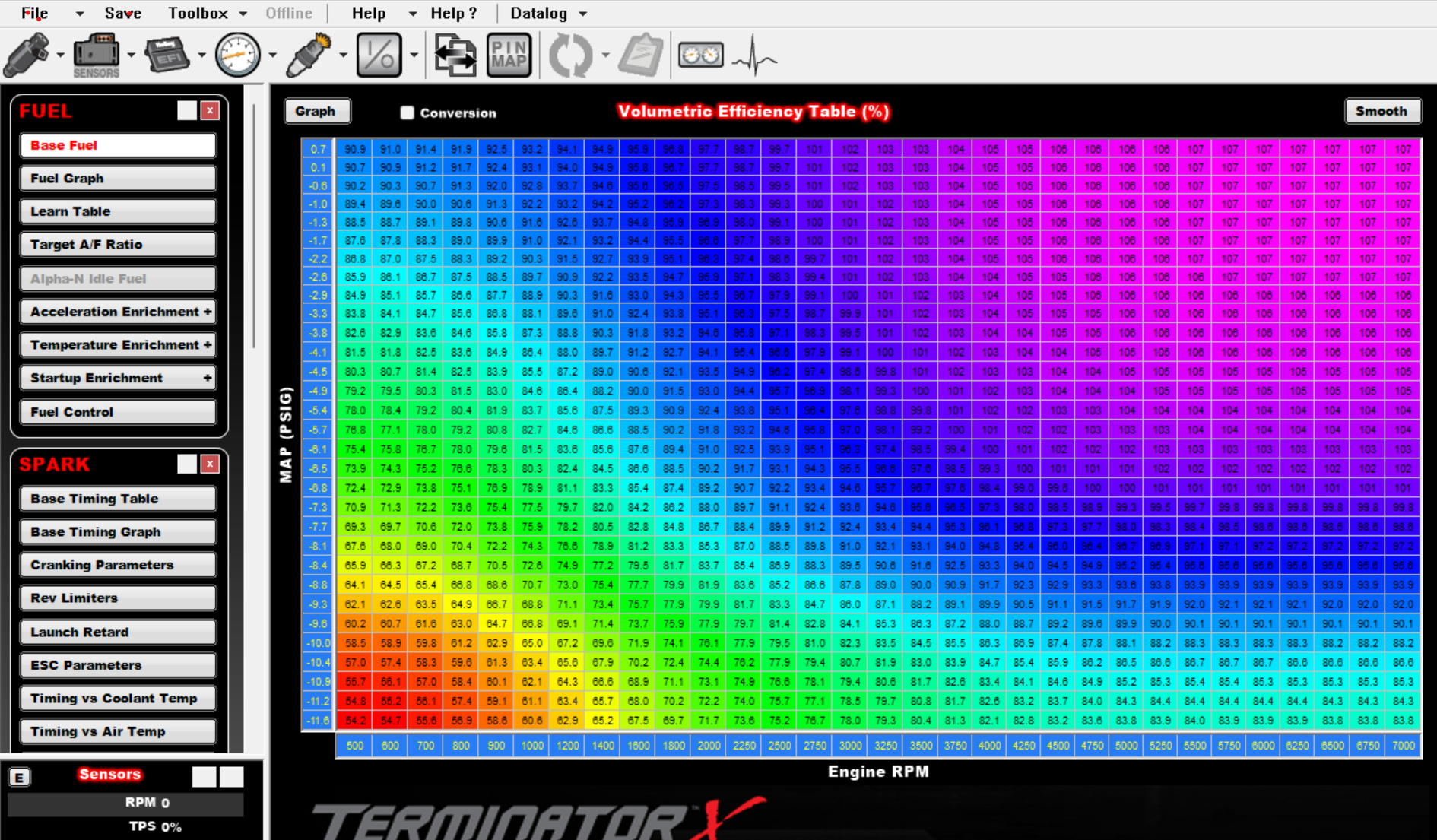 Shortly I will be starting and breaking in my new build and I have a few questions on my base tune set up using the Terminato X software. The tune was not built from the setup wizard. Just need to know if I'm headed in the right direction with fuel and spark tables for break in and baseline running and idle tuning. Spark table is set conservatie to be careful. Below are build specs for the engine as well as snips of the tune. I have very little tuning experience, but an looking to learn as much as possible along the way and am open to any and all suggestions. I have also inclued an attached zip file of the tune if anyone would be kind enough to take a look at the whole tune, if they like.