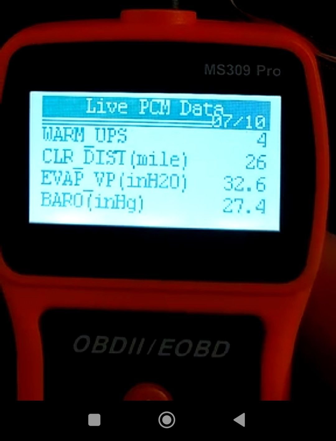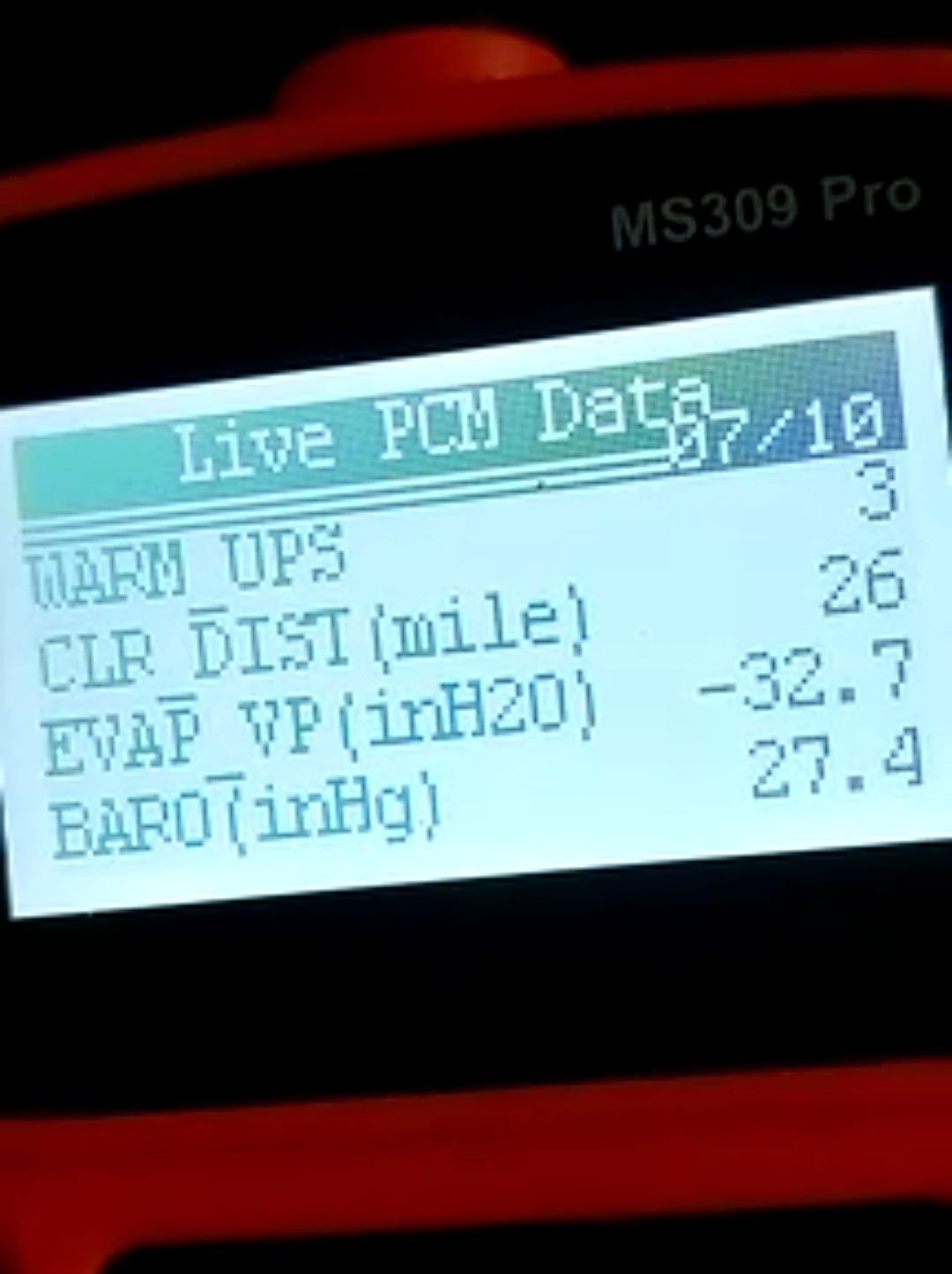 1. at idle on a warmed up car, the EVAP_VP reading is -32.7 inH20, with the norm being about -10 inH20.