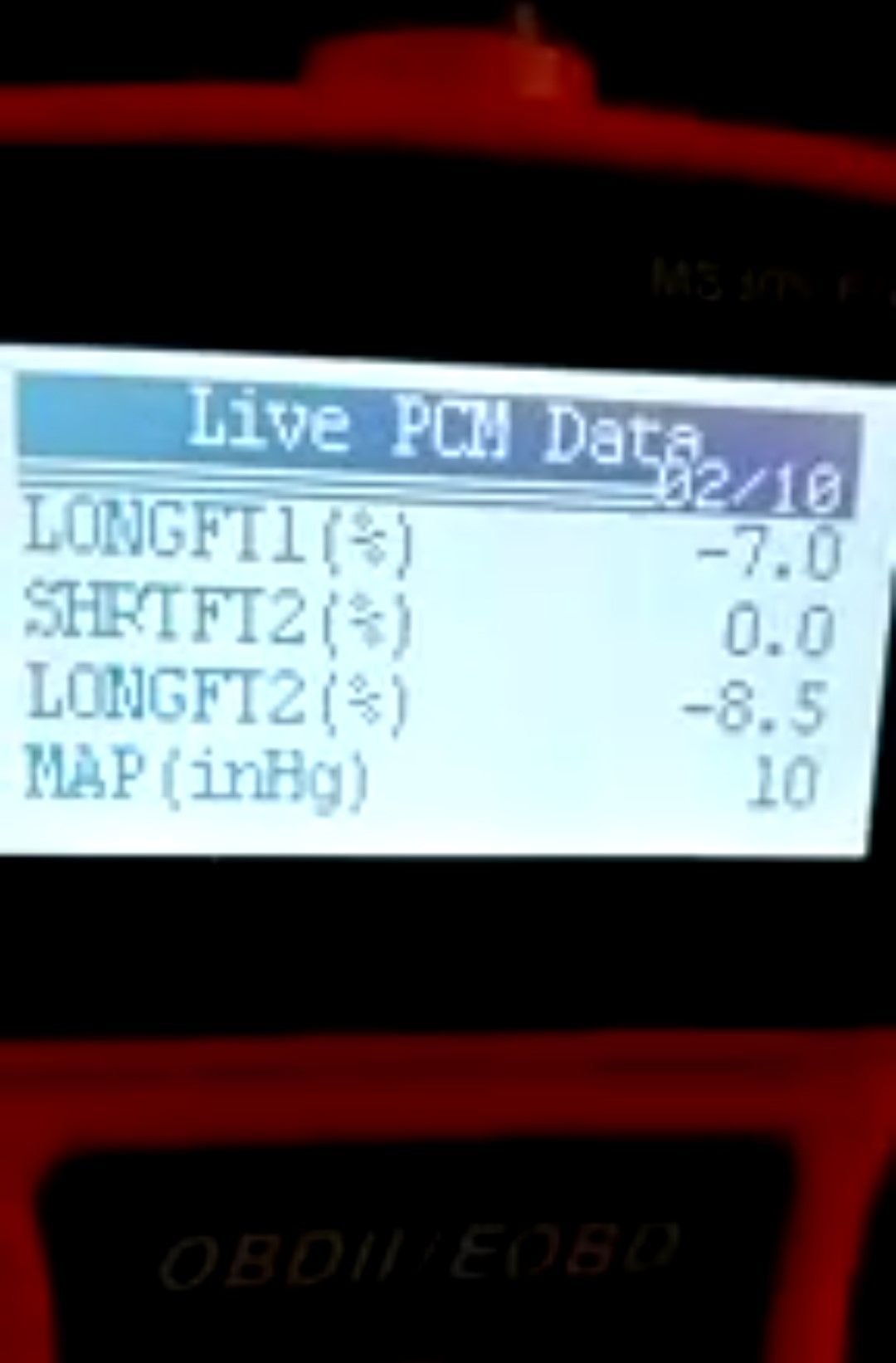 5. Fuel correction readings, also in the 10% range, although it does go beyond 5%.