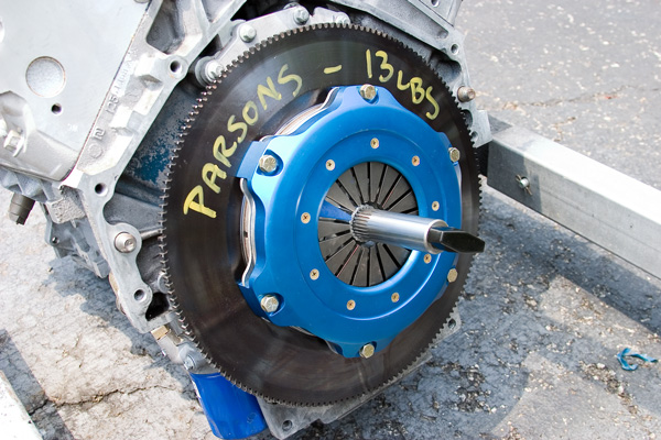 All done. The whole assembly with the flywheel and clutch is about 22 pounds: