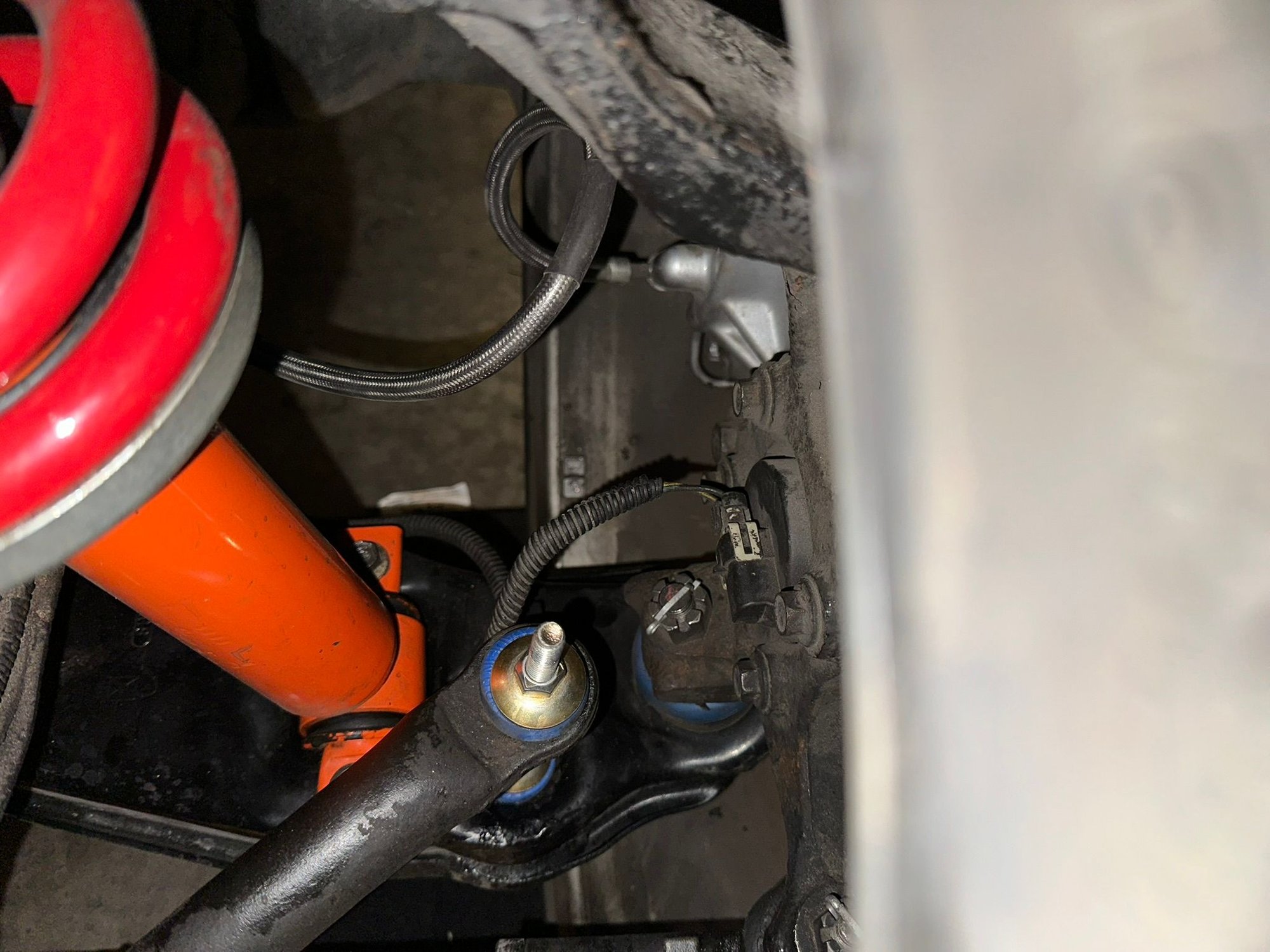 I installed some Koni Orange shocks with BMR springs back in 2022. The RF was squeaking bad so I warrantied it. Its good (maybe 400km on it since change), the Lefit side if i push down on front makes a light squeak, but it seems after a drive its gone (I suspect upper seal gets a little dry from sitting) - The bushing "spread" looks more on LF then on the newer RF, is this all look normal to you or do you see any problems?