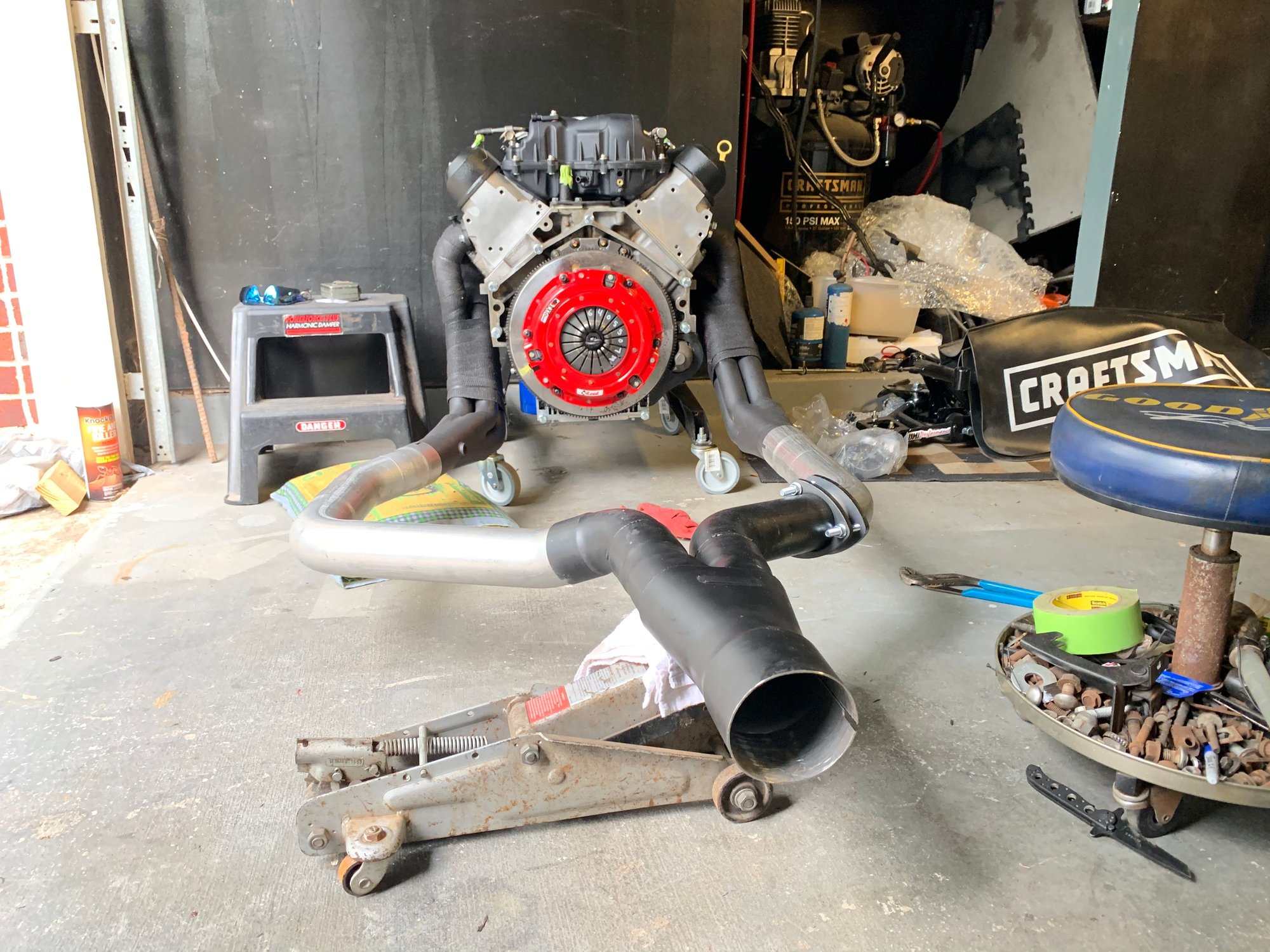 It’s back home. An LS7 with a dip stick, a 24X reluctor, all new rings, bearings, wet sump conversion with a trap door kit. I still need to set the ride height on the coil overs and tighten everything up underneath. I decided to get another transmission so I can keep my current one with the original engine. That’s ordered as well as the exhaust. I ended up going with the 4” Mufflex with the Magnaflow muffler. I think that the only parts that I need are a pilot bearing and the throw out bearing kit. I have also collected up on my coil relocation items. Things are going pretty good so far. All I have to do now is swap out the engine/K-Member. I am sure that is super easy...