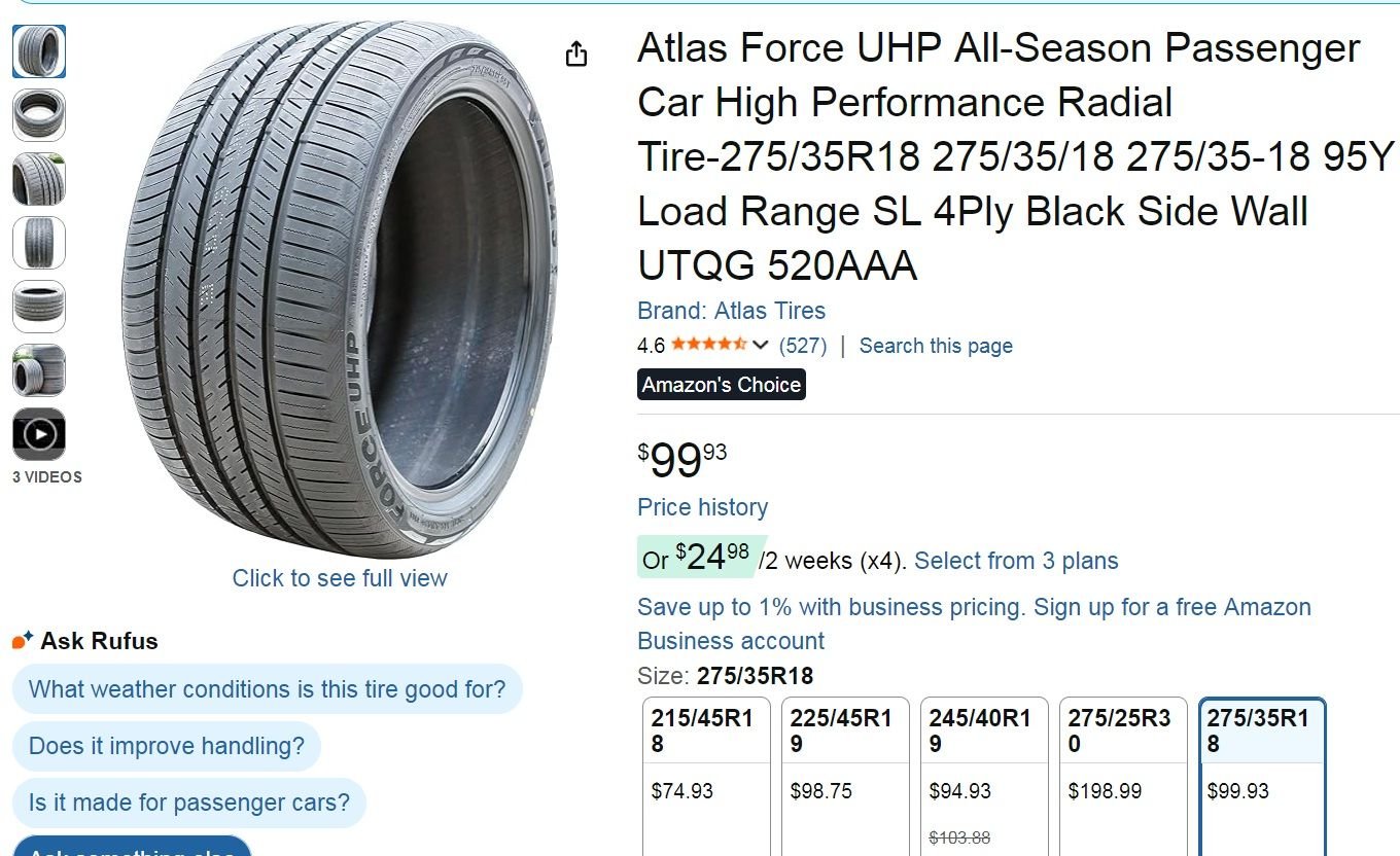 At only $89 for W rated tires it was a no brainer. Check to see prices on this in the size you need.
