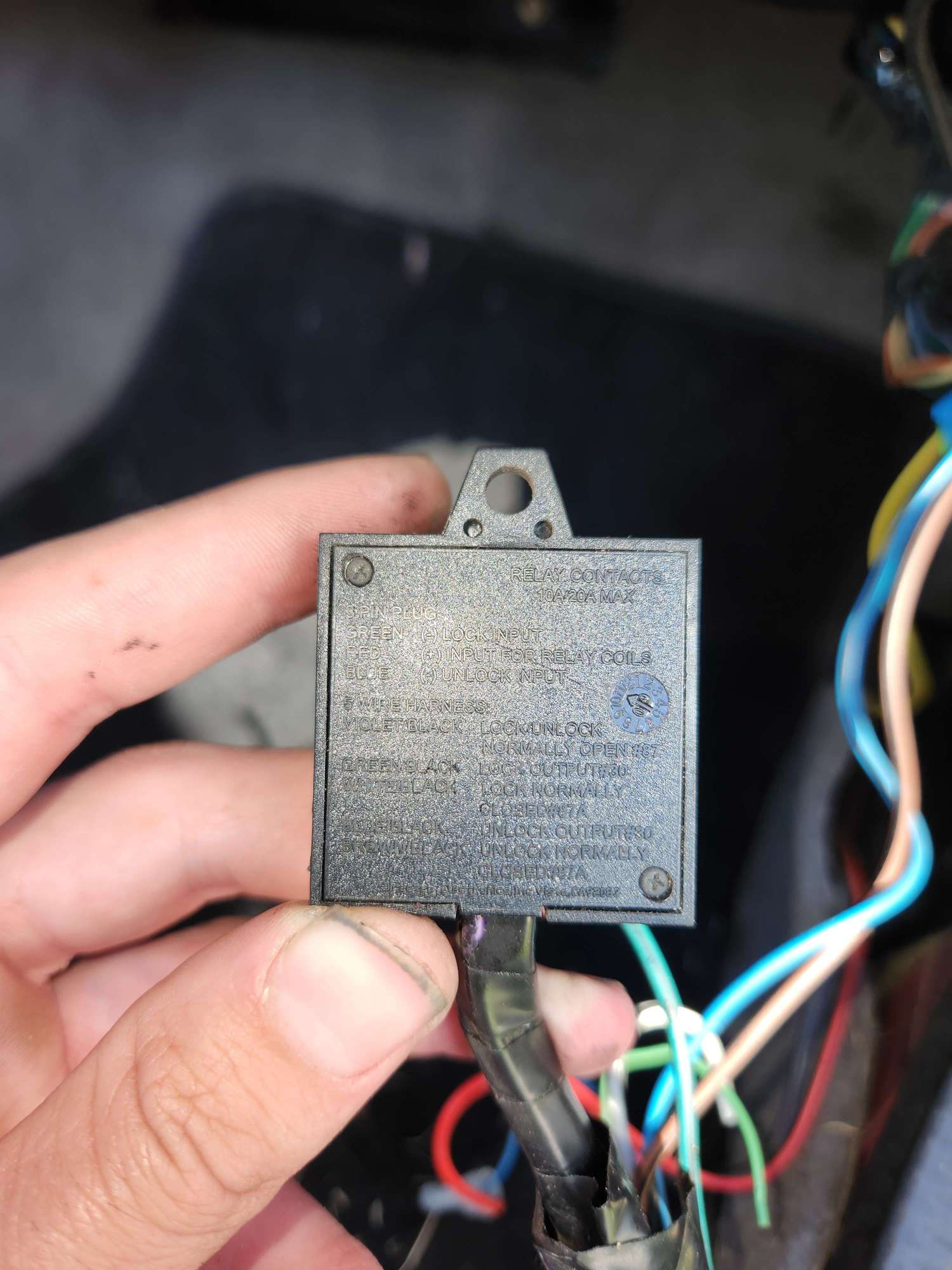 Thats a DEI 451M door lock control module for a DEI alarm or keyless entry system. That wire is 12V positive battery input to operate locks when commanded by the alarm.