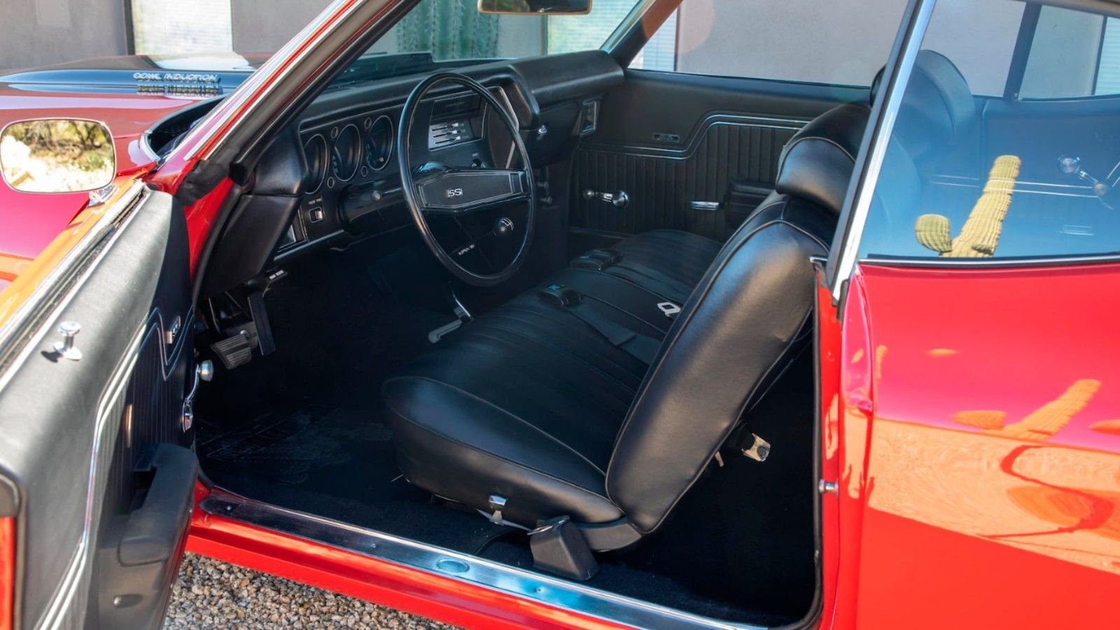 Open the door of this Chevelle and you'll be greeted by Black vinyl upholstery that screams '70s American muscle. The trip back in time continues with the car's AM only 8-track cassette radio system.