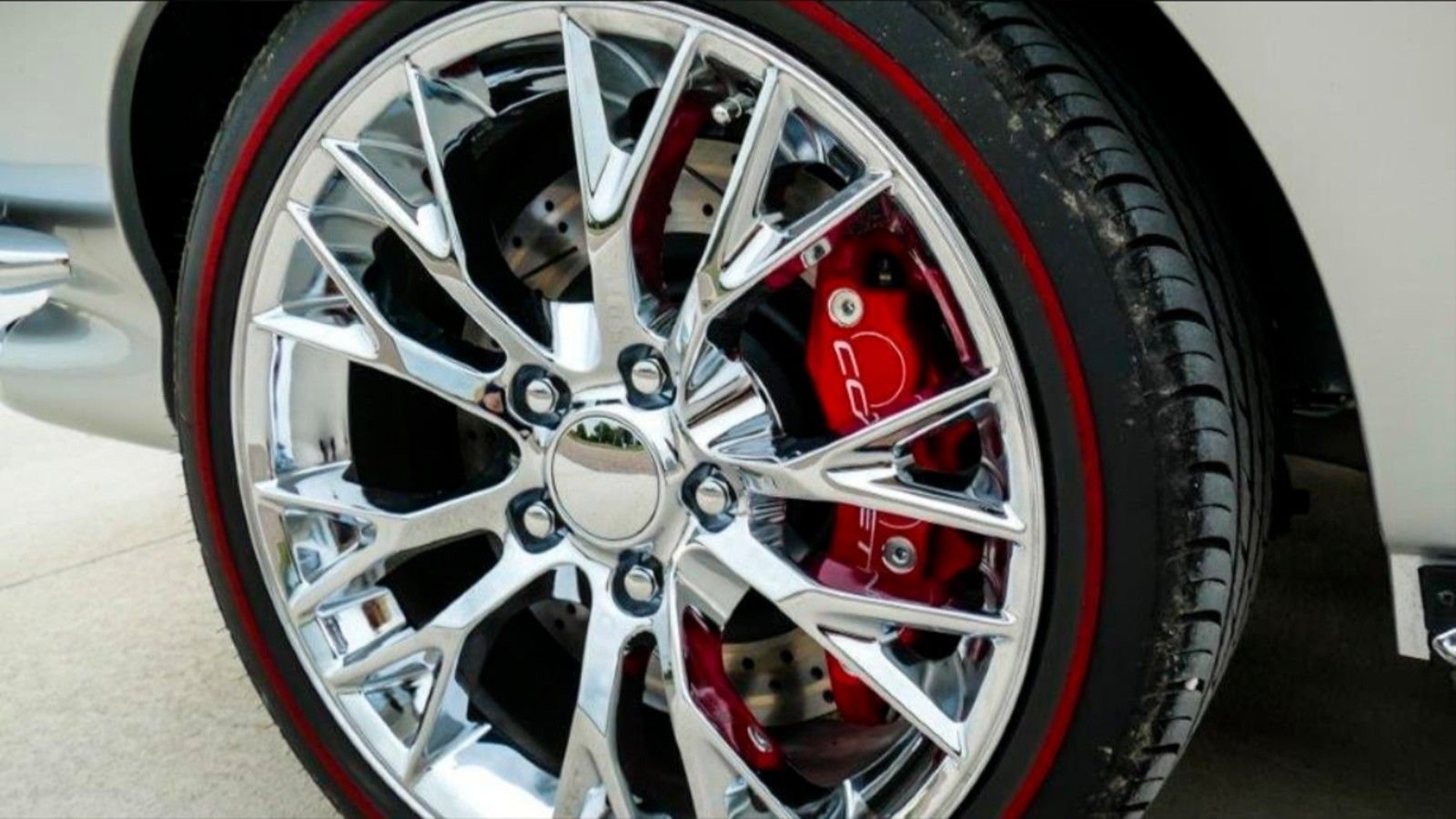 This car rides on chrome custom wheels which mightn't be to everyone's taste, but they certainly stand out! Those shiny wheels are wrapped by grippy Redline rubber to keep things planted.